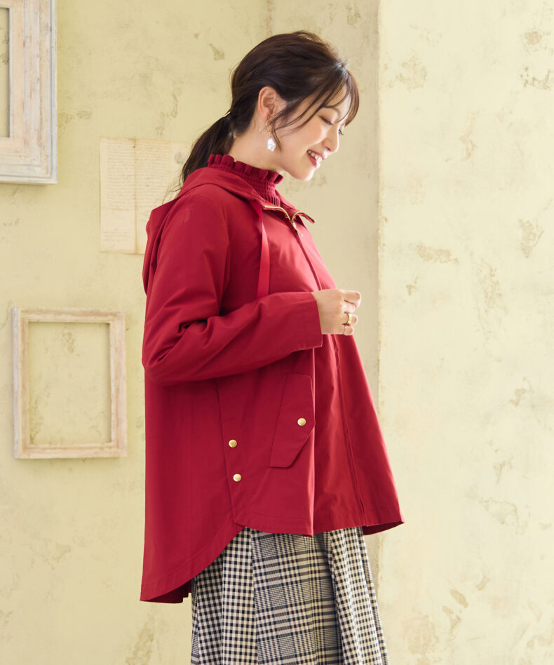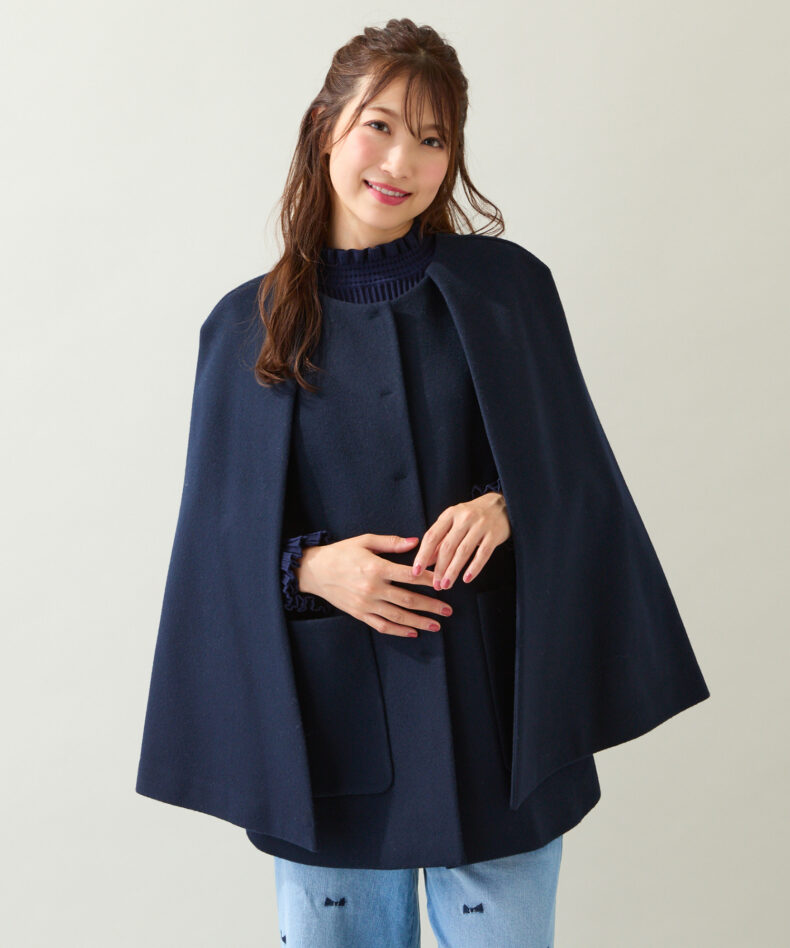 ケープデザインのショートコートは程よくゆとりを持たせているので動きやすくボリューム袖のアイテムとも好相性。