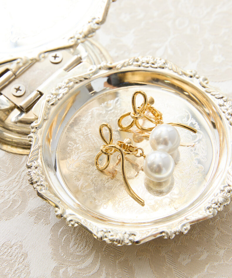 結び目のようなノットリボンモチーフが耳元でさりげなく華やぎをプラス。