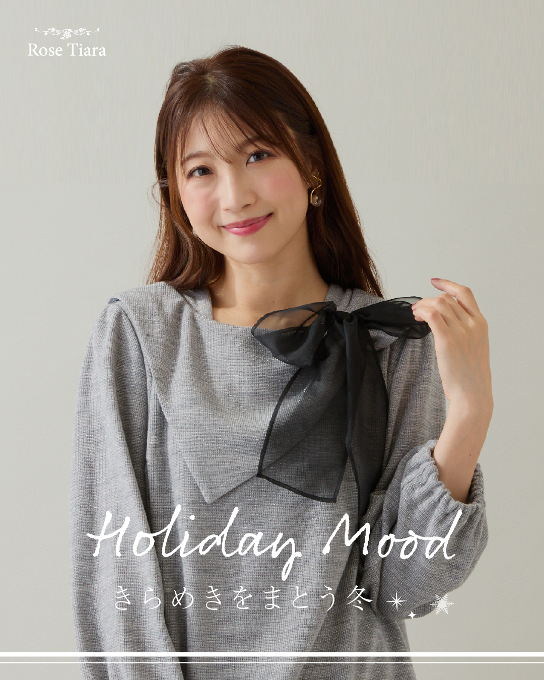 クリスマスディナーやイルミネーションにも映える、上品でフェミニンな印象。