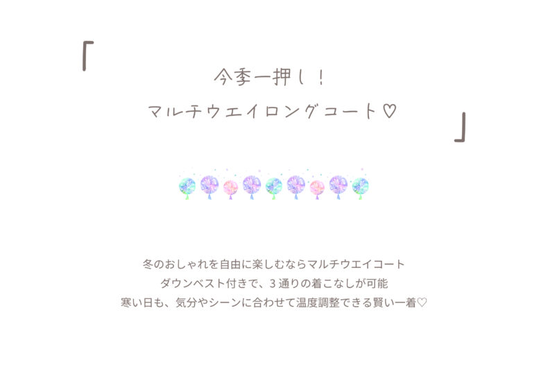 2025.11.14 スタッフダイアリー 新作、マルチウエイコート Rose Tiaraのマルチに着られるロングコート 要checkです♡ JUNIOR ONLINE SHOPはこちら RoseTiara SHOPはこちら