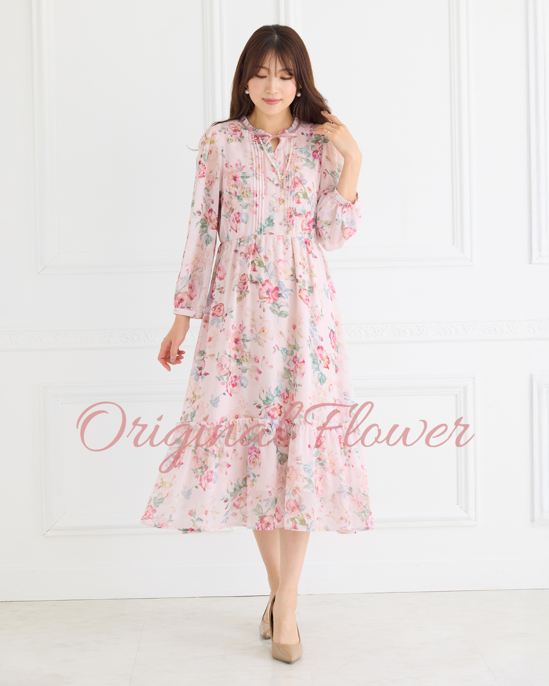 二重に重なる裾が春らしい軽やかさを運んで切れるデザイン。